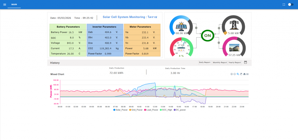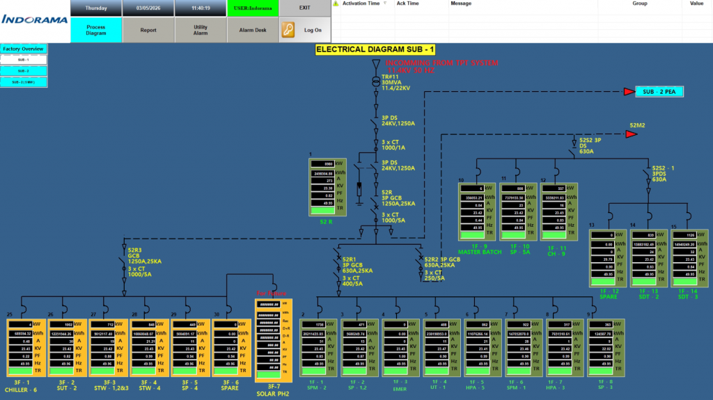 ระบบ SCADA (Supervisory Control and Data Acquisition) สำหรับการตรวจสอบ ควบคุม และแสดงผลข้อมูลของระบบอุตสาหกรรมแบบ Real-time ช่วยให้ผู้ใช้งานสามารถติดตามสถานะของเครื่องจักร กระบวนการผลิต และระบบพลังงานได้จากศูนย์ควบคุมผ่านหน้าจอ Monitoring และ Dashboard